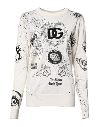 Dolce & Gabbana White Logo Angel Print Women Pullover Sweater
