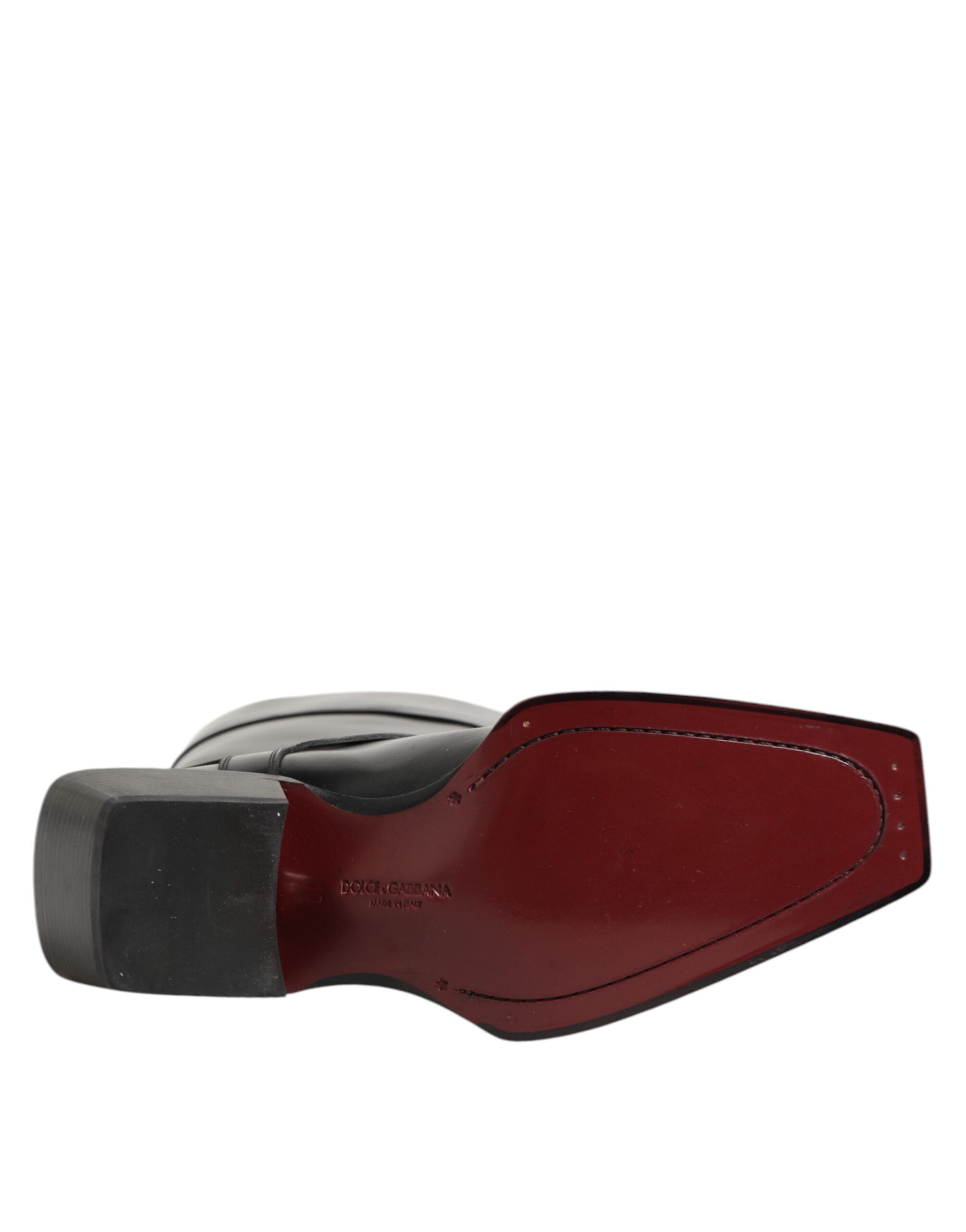 Dolce & Gabbana Black Logo Plaque Over The Calf Boots Shoes