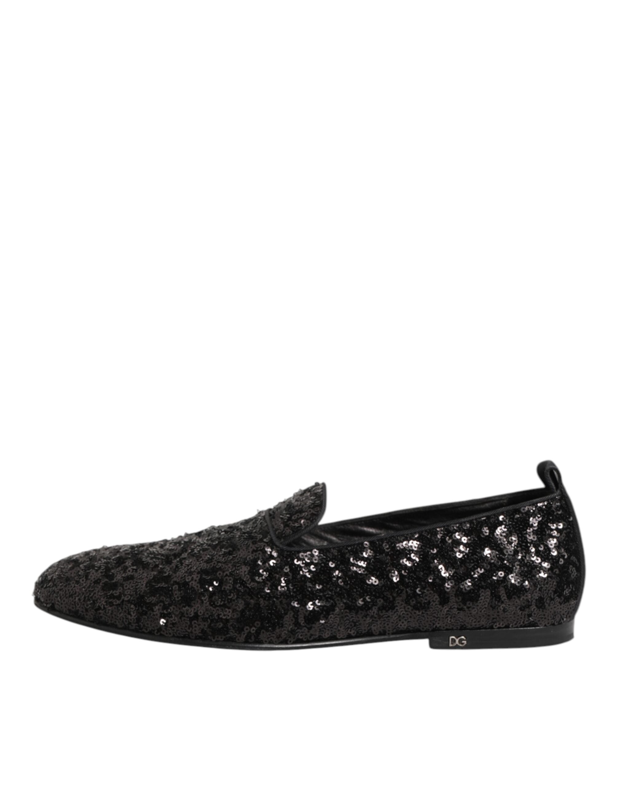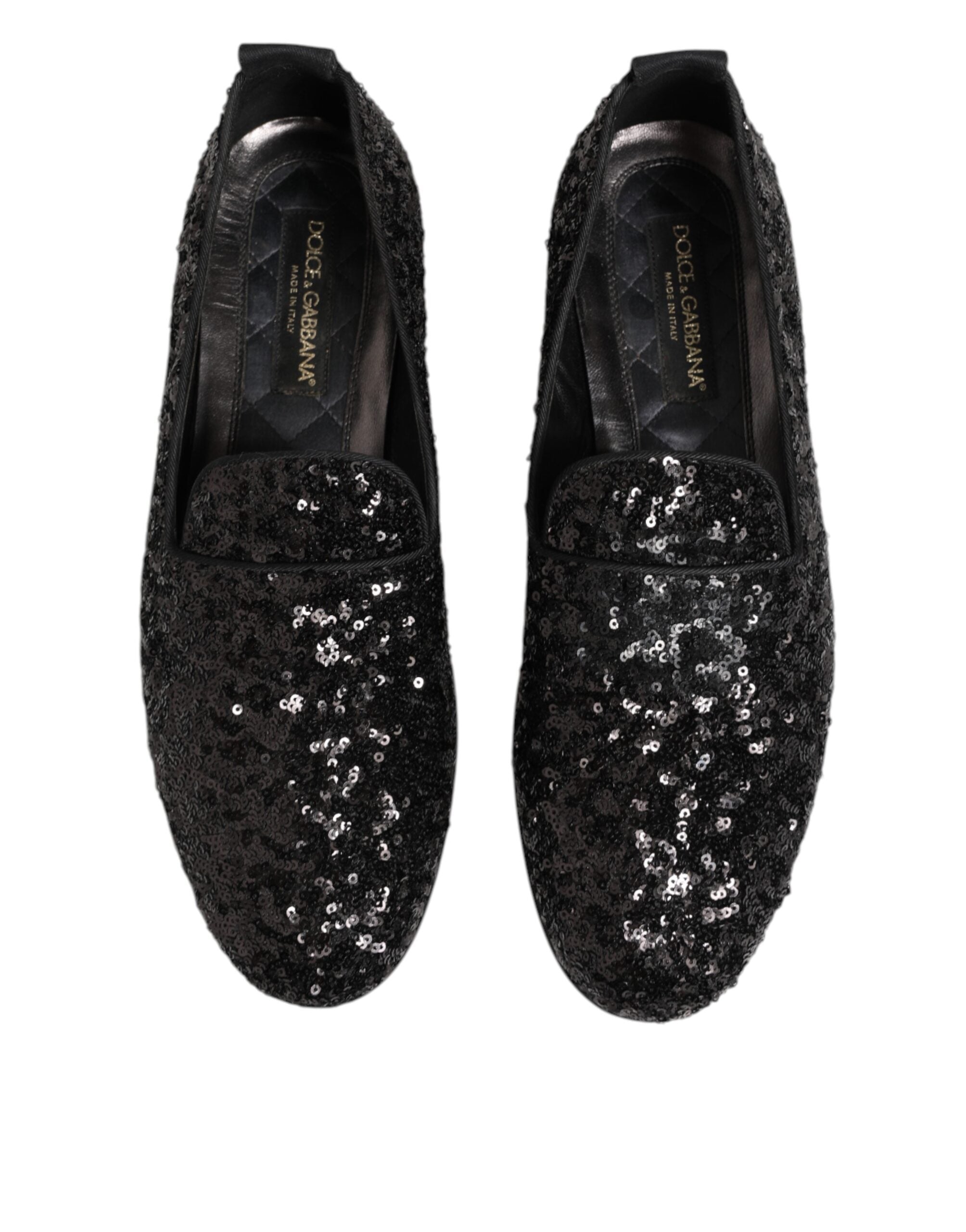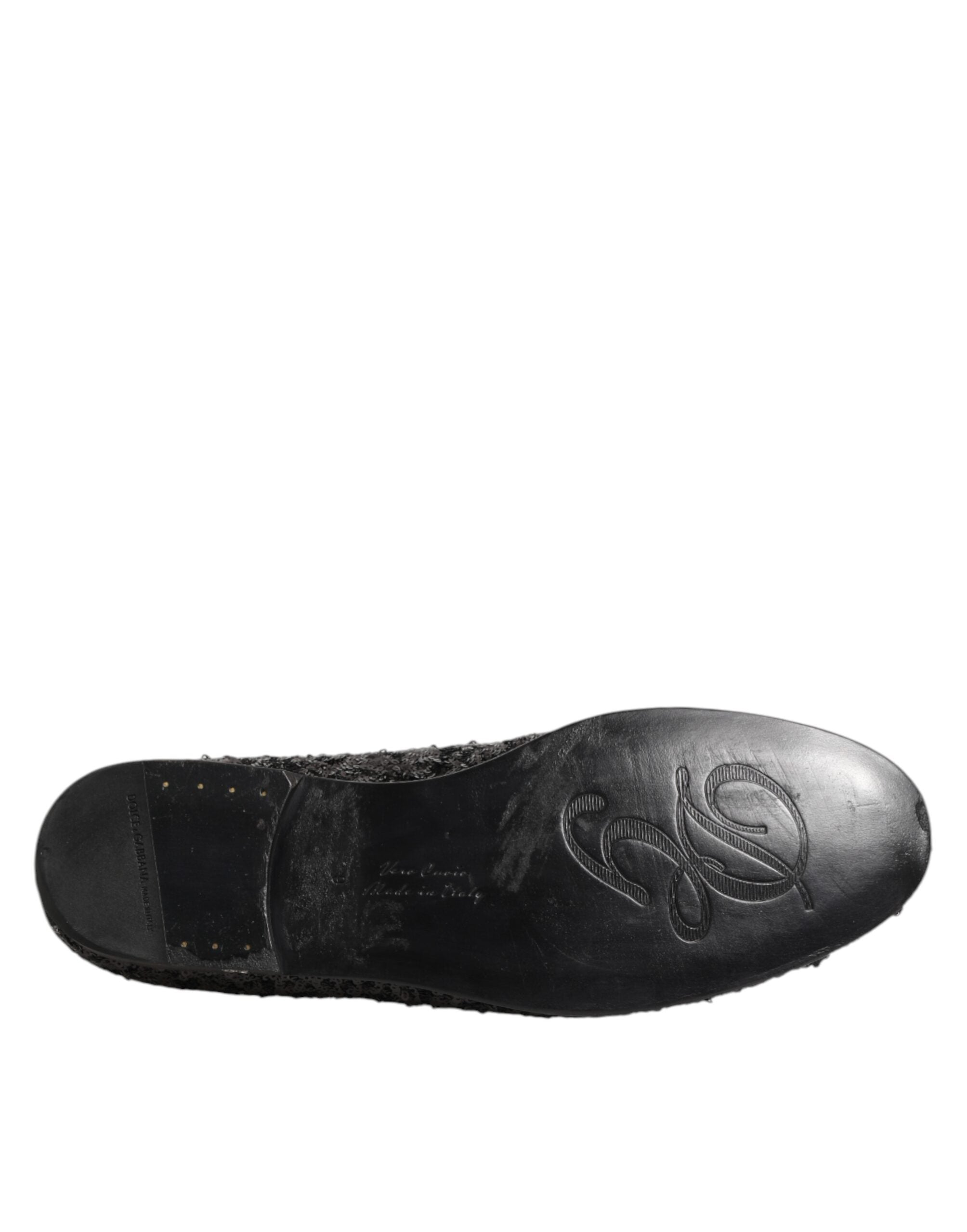 Dolce & Gabbana Black Sequined Slip On Loafers Dress Shoes