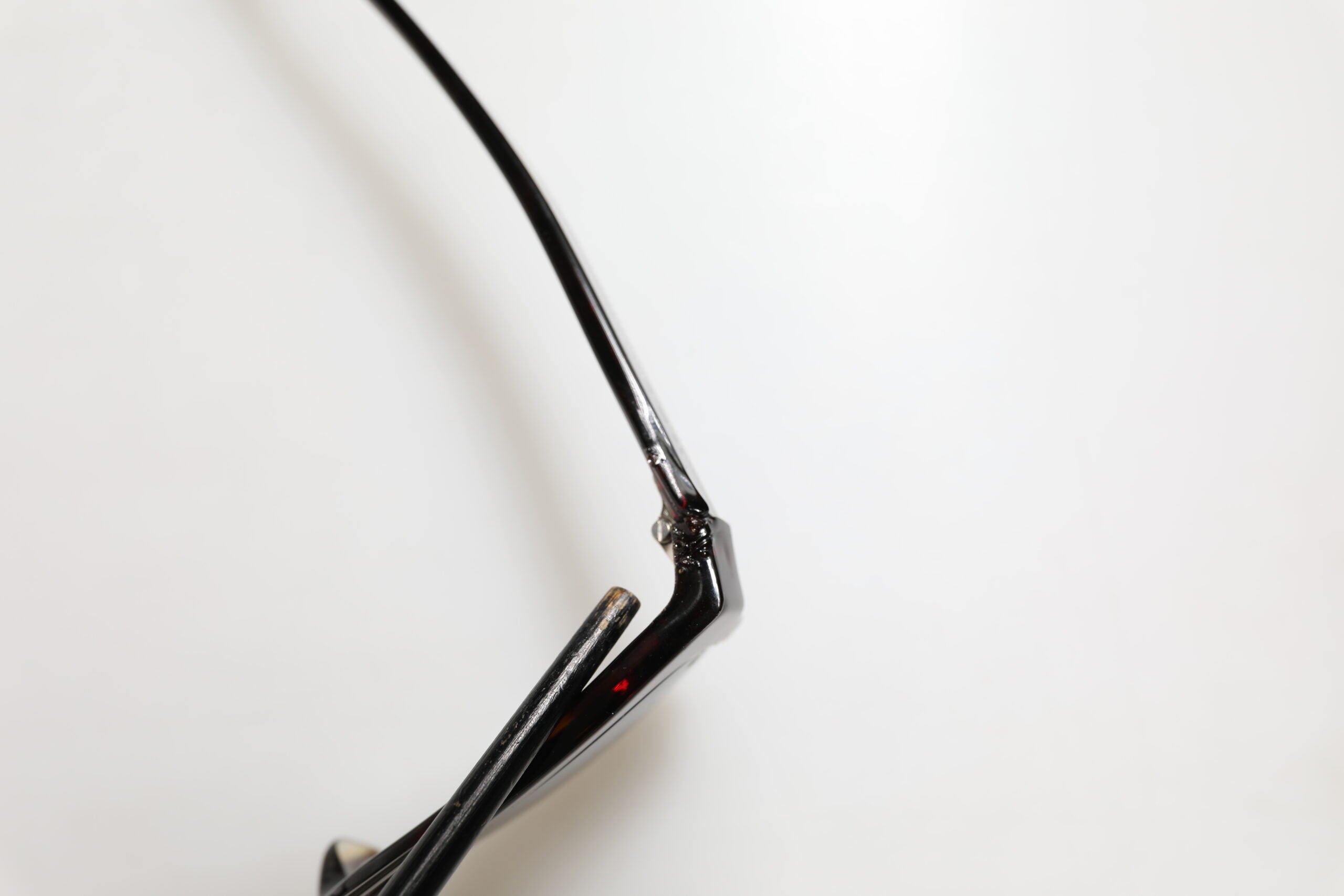 This item has a minor defect, there are glue marks on the left lens and rip on the left temple (see pictures for details).