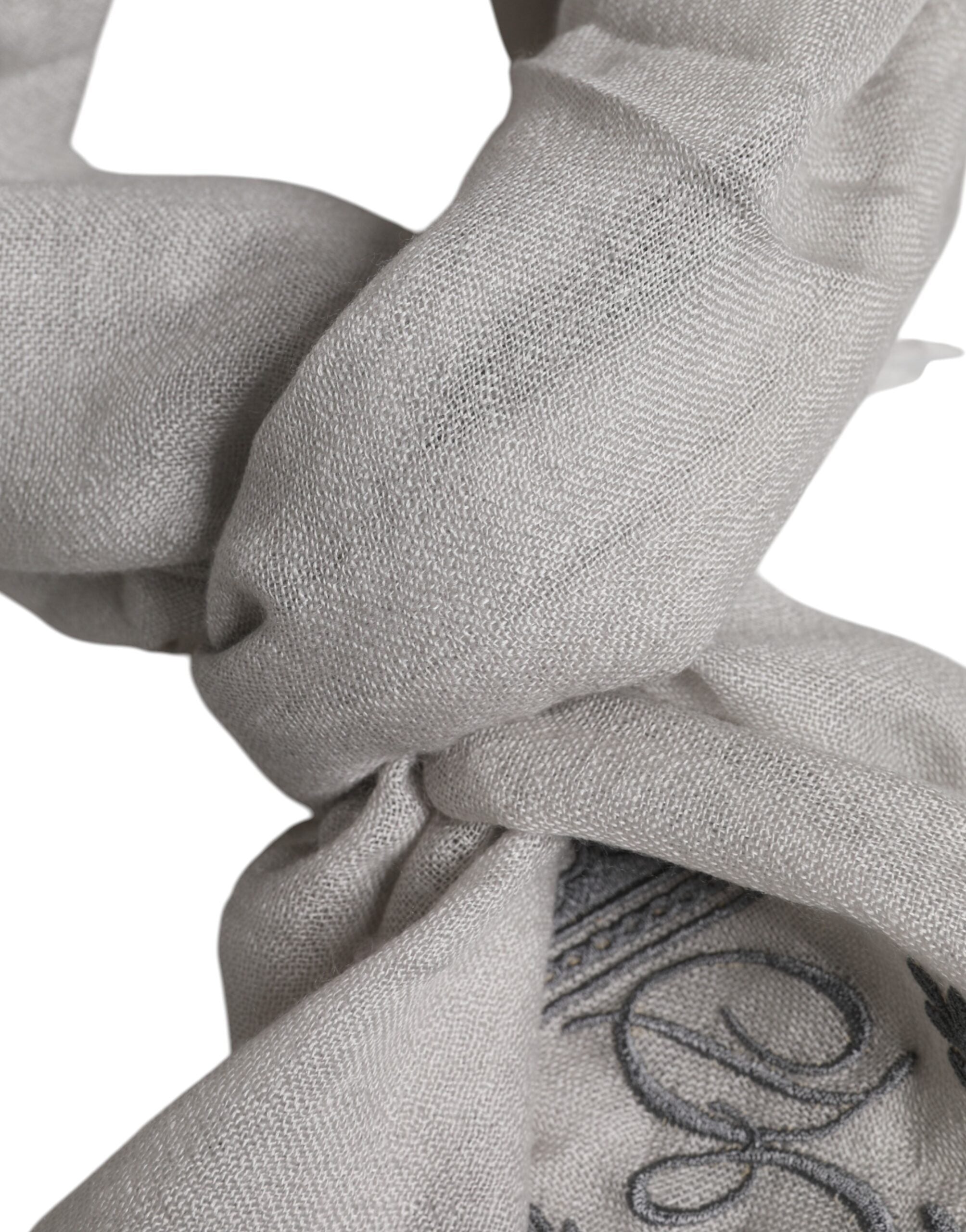 scarf is crafted from luxurious gray cashmere in a soft knitted design, featuring fringed edges for a refined finish. A timeless accessory that offers both warmth and elegance.
