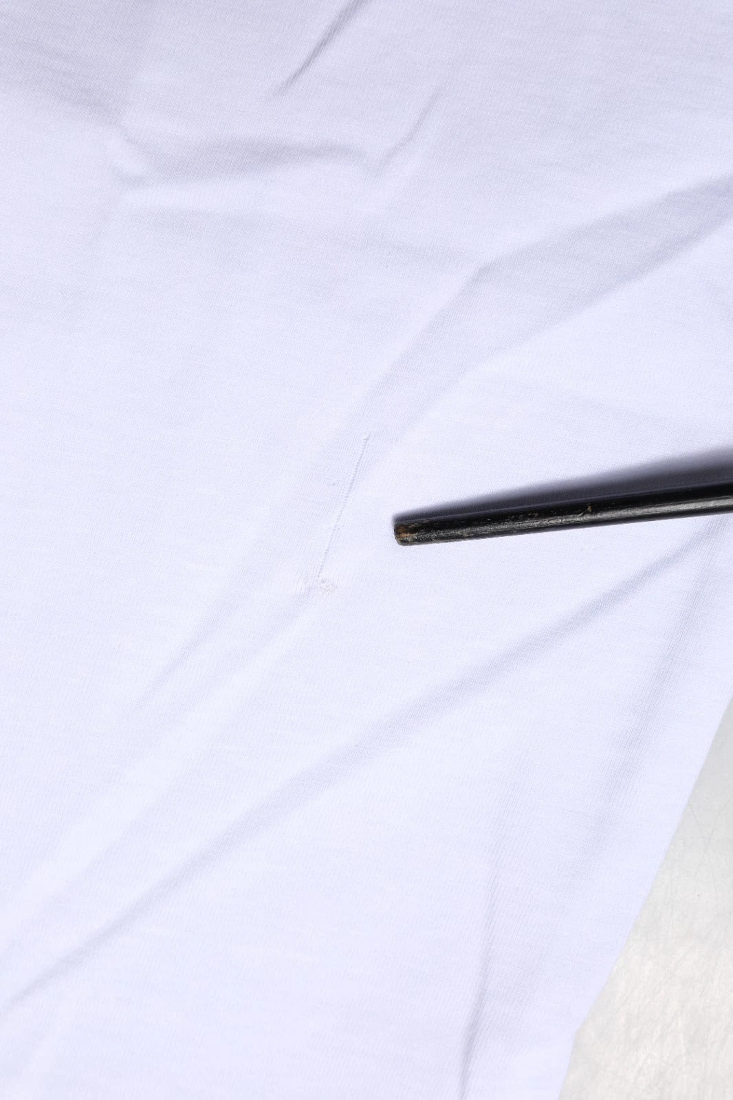 This item has a minor defect, there are repaired holes and pulled threads on the front side (see pictures for details).