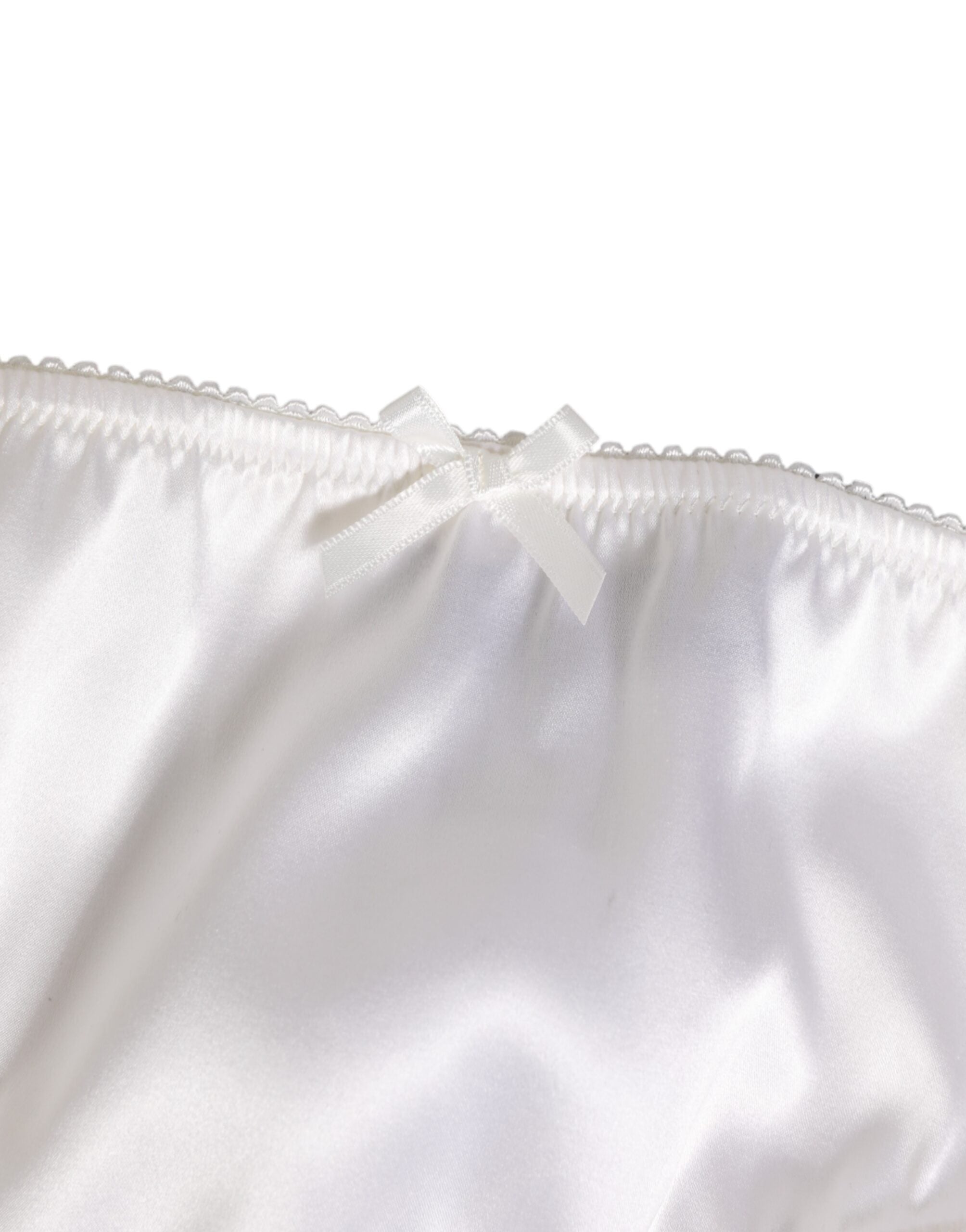 Gorgeous brand new, 100% Authentic Dolce & Gabbana white briefs, crafted in Italy from sumptuous silk satin. Finished with delicate lace trim, this elegant lingerie piece embroiders timeless sophistication and comfort.